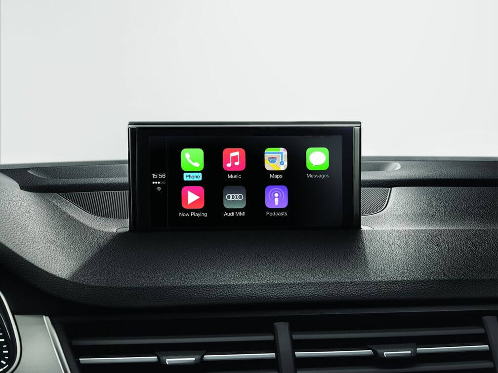 El Audi Smartphone Interface conecta su e-tron a su Smartphone usando Android Auto y Apple CarPlay. Esto le da acceso a versiones especiales de sus aplicaciones para el vehículo. Reproduzca su música favorita, realice llamadas, use su aplicación de navegación favorita y mucho más, todo detrás del volante. Active el asistente por voz presionando el botón en el timón. Ahora la tecnología de su celular es parte de su Audi eléctrico también.