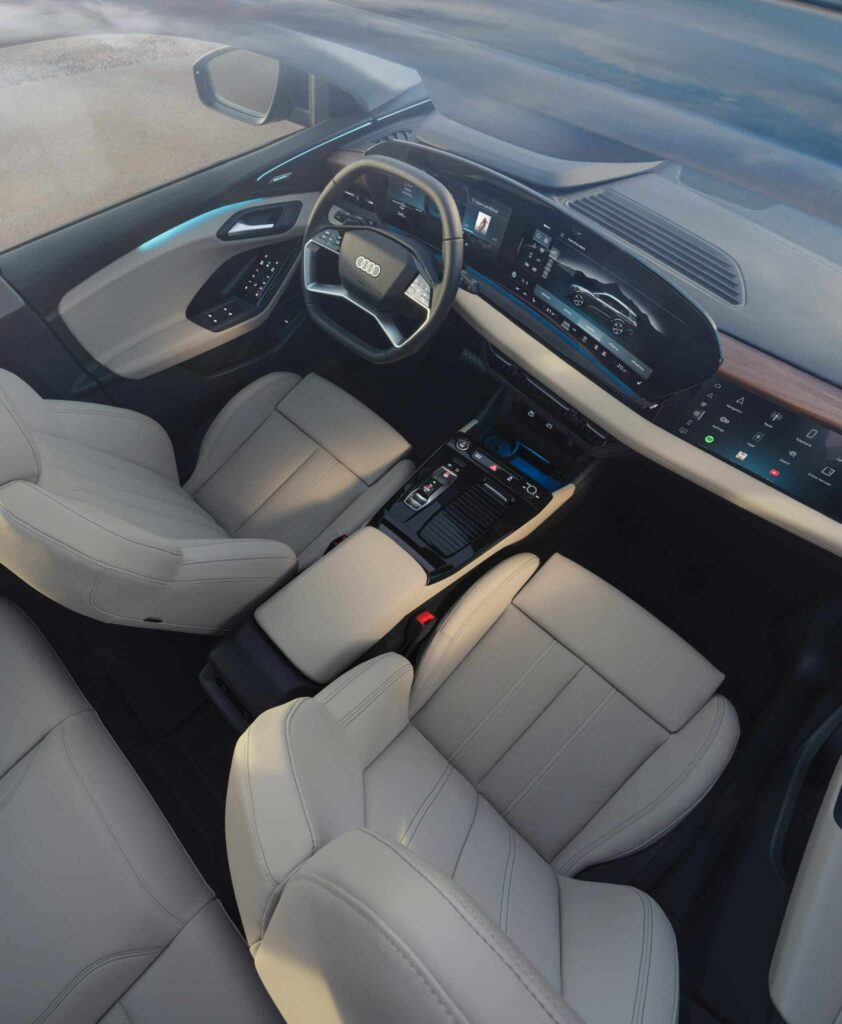 Con el Audi Q6 e-tron, Audi implementa un concepto interior completamente nuevo. La construcción estructurada con materiales de alta calidad crea claridad visual con una apariencia futurista.